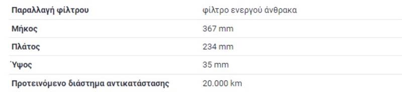 ΦΙΛΤΡΟ ΚΑΜΠΙΝΑΣ ΕΝΕΡΓΟΥ ΑΝΘΡΑΚΑ MERCEDES SPRINTER 906 B906 VW CRAFTER 30 - 50Παραλήπτης :