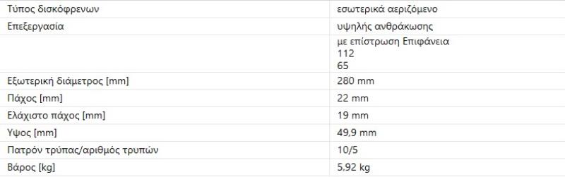 ΔΙΣΚΟΠΛΑΚΕΣ ΔΙΣΚΟΙ ΔΙΣΚΟΠΛΑΚΑ ΕΜΠΡΟΣ ΜΠΡΟΣΤΑ ΜΠΡΟΣΤΙΝΕΣ ΜΠΡΟΣΤΙΝΗ ΑΕΡΙΖΟΜΕΝΕΣ GOLF V VI VII A3 LEON OCTAVIA TOLEDO 280X22mm