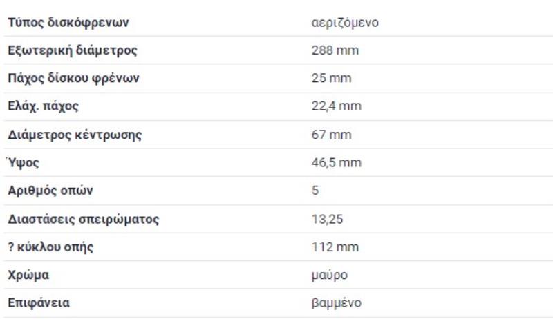 ΔΙΣΚΟΠΛΑΚΕΣ ΕΜΠΡΟΣ ΑΕΡΙΖΟΜΕΝΕΣ 288X25 mm C-CLASS W202 C-CLASS W203 C-CLASS ΚΟΥΠΕ CL203 CLC-CLASS CL203 CLK ΚΟΥΠΕ C208 W208 CLK ΚΟΥΠΕ C209 W209 CLK ΚΑΜΠΡΙΟΛΕ A208 W208 E-CLASS W210 SLK ΚΑΜΠΡΙΟΛΕ R170 W170 SLK ΚΑΜΠΡΙΟΛΕ R171 W171 BRAKE DISK