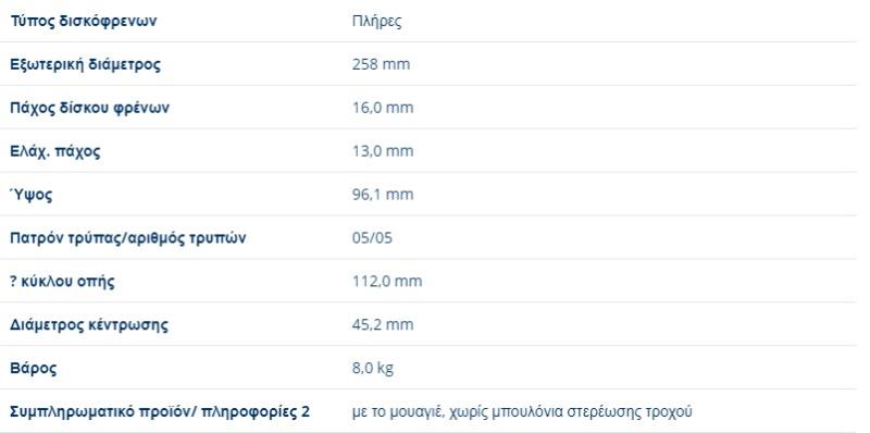 ΔΙΣΚΟΠΛΑΚΕΣ ΕΜΠΡΟΣ VW TRANSPORTER T3 1985 -1992 258X16 mmΠαραλήπτης :