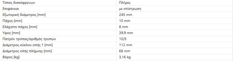 ΔΙΣΚΟΠΛΑΚΑ ΟΠΙΣΘΙΑ Α4 Α4 QUATTRO 01-05 245X10 mmΠαραλήπτης :