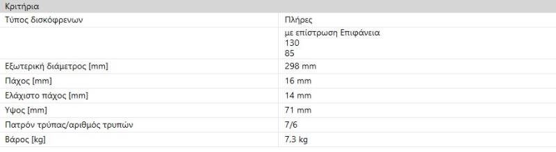 ΔΙΣΚΟΠΛΑΚΕΣ ΔΙΣΚΟΠΛΑΚΑ ΔΙΣΚΟΙ ΟΠΙΣΘΙΕΣ ΠΙΣΩ ΠΙΣΙΝΕΣ SPRINTER 906 CRAFTER 30-50 298X16mm
