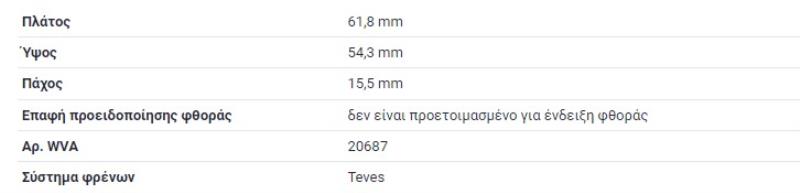 ΔΙΣΚΟΦΡΕΝΑ ΤΑΚΑΚΙΑ ΠΛΑΚΑΚΙΑ ΟΠΙΣΘΙΑ ΠΙΣΩ ΠΙΣΙΝΑ 190E W201 E-CLASS W124 C-CLASS W202 ATE 15.5mm ΔΥΟ ΠΥΡΑΚΙΑ