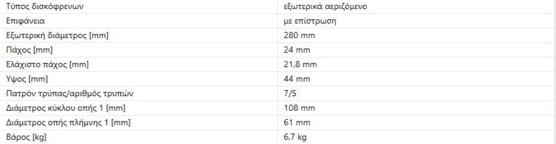 ΔΙΣΚΟΠΛΑΚΕΣ ΔΙΣΚΟΙ ΔΙΣΚΟΠΛΑΚΑ ΕΜΠΡΟΣ ΜΠΡΟΣΤΑ ΜΠΡΟΣΤΙΝΕΣ CITAN 415 280X24mm