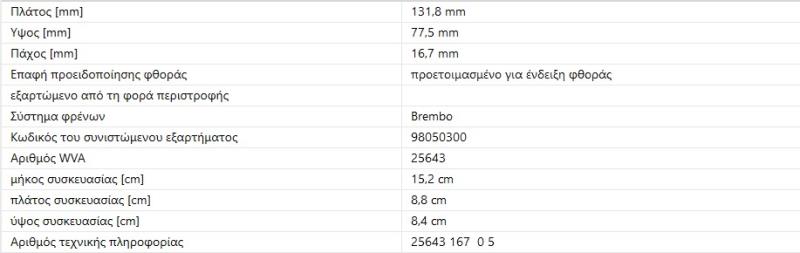 ΔΙΣΚΟΦΡΕΝΑ ΕΜΠΡΟΣ AUDI A6 2015- A7 2015- Q5 2014- PORSCHE MACAN 2015-Παραλήπτης :