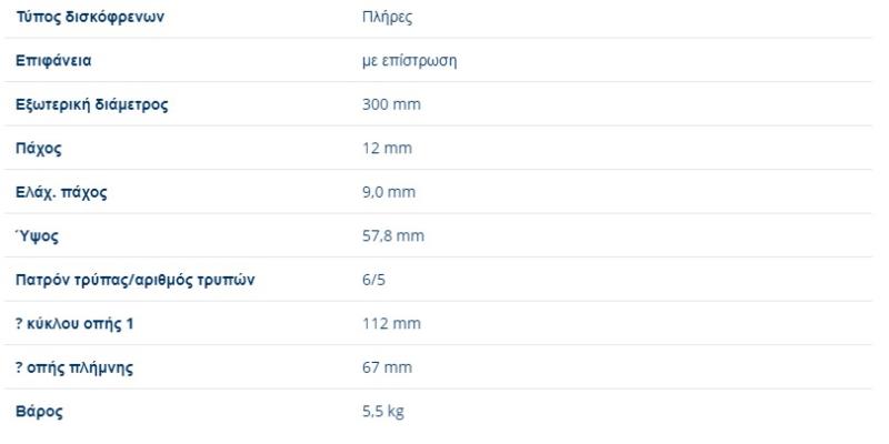 ΔΙΣΚΟΠΛΑΚΕΣ ΔΙΣΚΟΠΛΑΚΑ ΠΙΣΩ ΠΙΣΙΝΕΣ ΟΠΙΣΘΙΕΣ V-CLASS W447 VITO W447 300X12mm