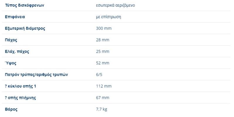 ΔΙΣΚΟΠΛΑΚΕΣ ΕΜΠΡΟΣ VITO W447 300X28 mmΠαραλήπτης :