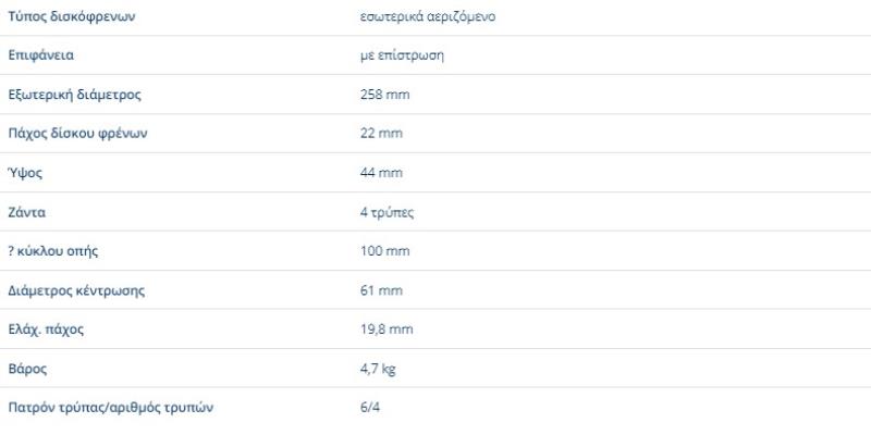 ΔΙΣΚΟΠΛΑΚΕΣ ΕΜΠΡΟΣ ΑΕΡΙΖΩΜΕΝΕΣ SMART FORFOUR 453 FORTWO 453 258X22mmΠαραλήπτης :