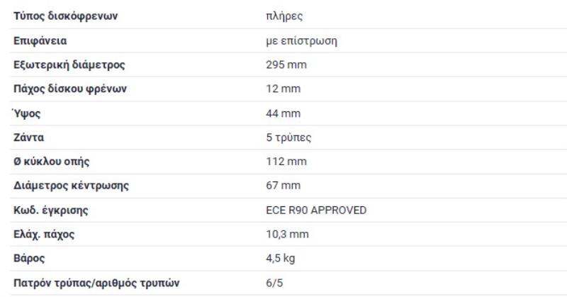 ΔΙΣΚΟΠΛΑΚΕΣ ΟΠΙΣΘΙΕΣ 295X12 A-CLASS W177 V177 B-CLASS Sports Tourer W247 CLA ΚΟΥΠΕ C118 W118 CLA Shooting Brake X118 GLE H247 SUV GLB X247 SUVΠαραλήπτης :