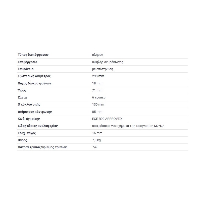 ΔΙΣΚΟΠΛΑΚΑ ΔΙΣΚΟΠΛΑΚΕΣ ΔΙΣΚΟΙ ΟΠΙΣΘΙΑ ΟΠΙΣΘΙΕΣ ΠΙΣΩ ΠΙΣΙΝΕΣ 298X18 6/130 REAR BRAKE DISK