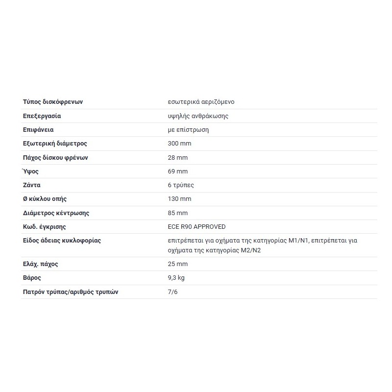 ΔΙΣΚΟΠΛΑΚΕΣ ΕΜΠΡΟΣ 300X28mm MERCEDES-BENZ SPRINTER 906 B906 MERCEDES-BENZ SPRINTER 907 B907 MERCEDES-BENZ SPRINTER 910 B910 VW C
