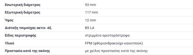 ΤΣΙΜΟΥΧΑ ΣΤΡΟΦΑΛΟΥ ΟΠΙΣΘΙΑ ΜΕΓΑΛΗ M102 OM601 93X117X12 190E W201 W123 G-CLASS W460 T1 601 B601 T1 611 B611 T1 602 B602 SEAL RING