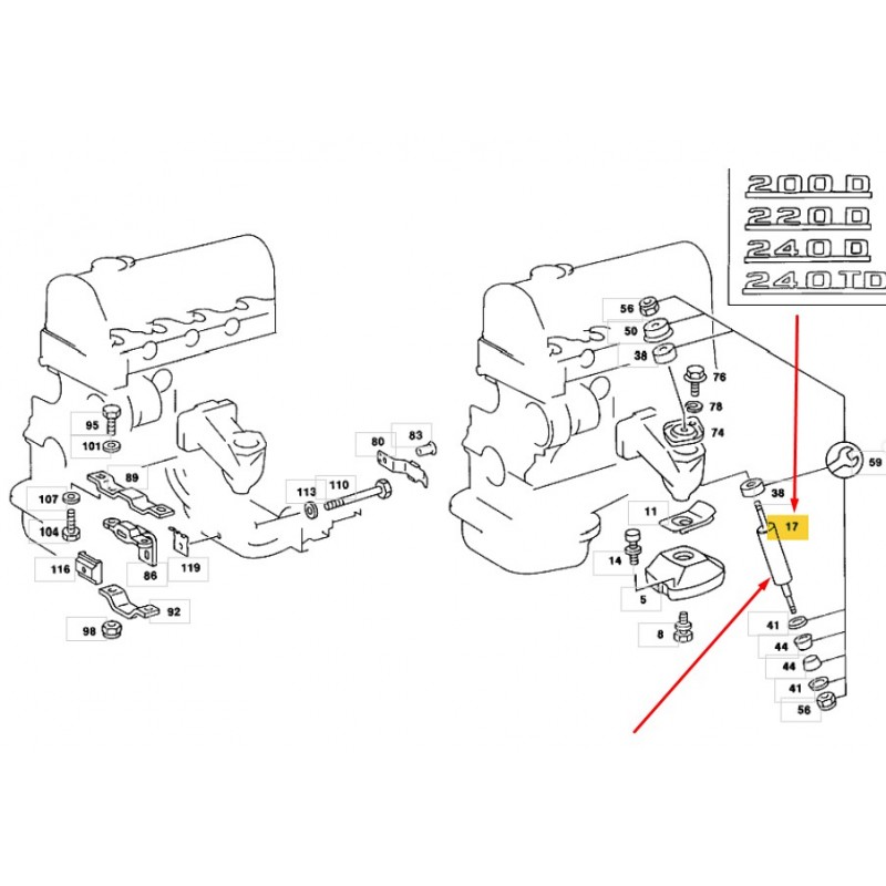 ΑΜΟΡΤΙΣΕΡ ΒΑΣΗΣ ΜΗΧΑΝΗΣ ΚΙΝΗΤΗΡΑ OM617 DIESEL TURBO DIESEL 300D 300TD MERCEDES-BENZ W123 SEDAN MERCEDES-BENZ W123 COUPE C123 MER