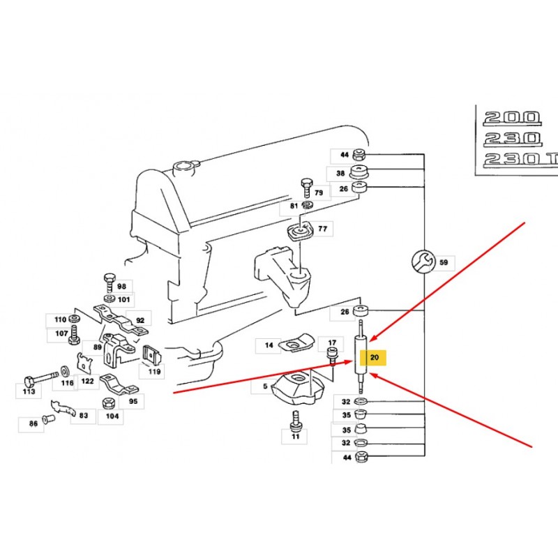 ΑΜΟΡΤΙΣΕΡ ΒΑΣΗΣ ΜΗΧΑΝΗΣ ΚΙΝΗΤΗΡΑ M102 M103 M110 M115 M116 M117 M123 OM615 OM616 OM617 MERCEDES-BENZ W123 SEDAN MERCEDES-BENZ S-C